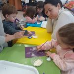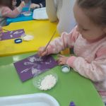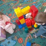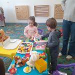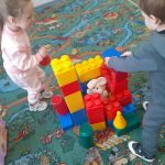 На прошедшей неделе возобновились занятия в детской студии «Развиваемся играя». После небольших каникул детки с удовольствием играли вместе. Строили домик для зайки, и делали обед для лесных жителей. Катались с горки и танцевали. Сделали аппликацию «Заснеженное дерево» с манной крупой.