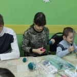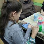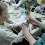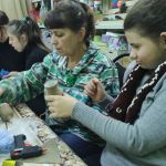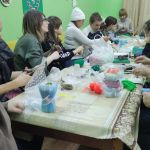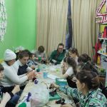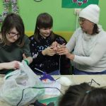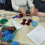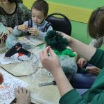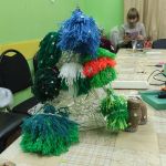 На занятии по декоративно-прикладному искусству в инклюзивной творческой лаборатории «Дорога к счастью» ребята смастерили ёлочки из пряжи. Цвет пряжи ребята выбирали на свой вкус, поэтому елочки получились очень яркие.