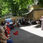 Во дворы домов, где проживают ветераны и участники Великой Отечественной войны, подъезжает микроавтобус и звучит аудиозапись с текстом о биографии, боевых и трудовых заслугах ветеранов ВОВ. Для ветеранов и участников ВОВ звучат известные и любимые песни военных лет.