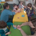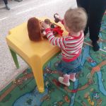 Сегодня в детской студии ДК «Россия» «Развиваемся, играя» к деткам в гости приходил ёжик и рассказывал о весне. Ребята сделали для него яркие резиновые сапожки, а затем отправились в лес собирать грибы. Ещё нашли шишки и орешки для белочки, катались на паровозике и строили дом.