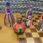 Руководитель студии — Булатова Светлана Александровна придумала интересный вариант работы: из горлышка от пластиковой бутылки создать таких замечательных барышень и милого медведя.