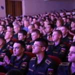 Зал заполнялся постепенно: подтягивались и старшее поколение с заслуженными медалями на пиджаках, и молодые ребята – курсанты военных училищ в чётком строю, и даже целые семьи с детьми. К началу концерта в зале почти не осталось свободных мест – публика самых разных возрастов собралась, чтобы разделить общую радость от музыки.