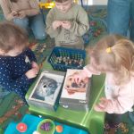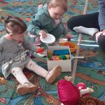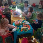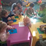 Сегодня в детской студии «Развиваемся, играя» малыши поиграли с куклой Машей. Кормили, катались с горки и танцевали, лепили. А в старшей группе устроили званый ужин, помогли кукле Маше накормить кошку и собаку. Построили домик и потанцевали. Рисовали дорожки для лесных жителей и в завершении занятия сделали на память аппликацию «Медвежонок».