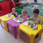 Вчера в детской студии «Развиваемся, играя» дети играли с с петушком. Сделали для него кормушку, познакомились с его друзьями из деревни, танцевали, строили и лепили песочные фигуры. Малыши накормили собачку и кошечку. А детки постарше сделали аппликацию «Машина» — задание оказалось непростым, но ребята проявили воображение.