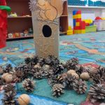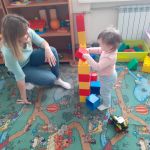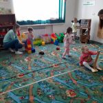 Сегодня в студии «Развиваемся, играя» детки изучали пространство и знакомились с новенькими. Танцевали игру «Паровозик». Помогли белочке собрать шишки и орешки в дупло. Строили домик для мишки. И сделали аппликацию «Осеннее дерево».