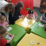 13 мая в деткой студии «Развиваемся, играя» прошло занятие под названием «Цветы». Дети подбирали похожие цвета по оттенку и составляли цветочки. После отправились на импровизированную полянку, где нашли много ярких цветов и посадили клумбу. В заключении занятия сделали аппликацию «Цветная поляна» из пластилина.