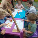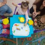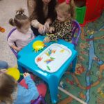 Сегодня в детской студии «Развиваемся играя» наши малыши встретились с солнышком и тучкой. Поиграли в пальчиковую игру «дождик», сделали лучики солнышкам и дождик для тучек, также собрали вместе необычную горку и потанцевали. В заключении нарисовали картину «Лучики для солнышка». Несмотря на дождик за окном, на встрече было очень тепло и уютно.