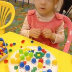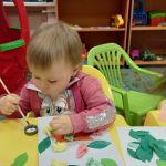 Вчера в детской студии «Развиваемся, играя» состоялось занятие, на котором дети делали цветочную полянку из мозаики. Работа с мозаикой — это не просто детская игра, это своего рода волшебство, в процессе которого из маленьких кусочков формируется изображение предметов или целые сюжетные картины. Игра в мозаику тренирует мелкую моторику рук, развивает воображение, художественный вкус и образное мышление. В процессе создания рисунка из мозаики малыш воспитывает целенаправленность деятельность, внимательность и наблюдательность. Ребенок учится согласованности движений, тренирует усидчивость, развивает абстрактное и пространственное мышление. Мозаика приучает работать по определенным правилам, образцу, стремиться довести замысел до видимого результата. А самых маленьких еще знакомит с основными формами, цветами, развивая зрительное внимание и сенсорику.