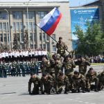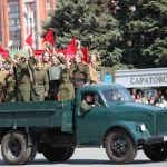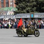 Парад Победы! Вспомним сегодня, как радостно и красиво это было — стройные колонны курсантов и суворовцев, торжественный военный оркестр, Командующий на открытом автомобиле, на трибунах — наши дорогие ветераны, и, конечно, великолепные театрализованные постановки с участием коллективов Дворца культуры «Россия». Даже погода всегда была солнечной и прекрасной!