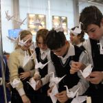 Учащиеся Покровской православной классической гимназии имени святого благоверного князя Александра Невского сделали собственными руками белых бумажных журавликов на мастер-классе в павильоне музейного комплекса, которые стали кульминационной точкой мероприятия, превратившись в импровизированную журавлиную стаю на экспозиции «Трудовая слава Саратовской области» Музея боевой и трудовой славы.