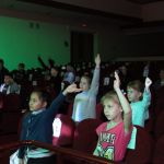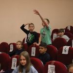 На мероприятии дети играли в интерактивные игры знакомства, смайлики, «Отгадай рифму», разгадывали ребусы и логические задачи, а после посмотрели мультфильм «Тайна Мосли».