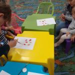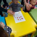 Потом отправились в лес под музыкальную паузу «Паровозик». Раскрасили осенние листья и отыскали потерянные камушки.