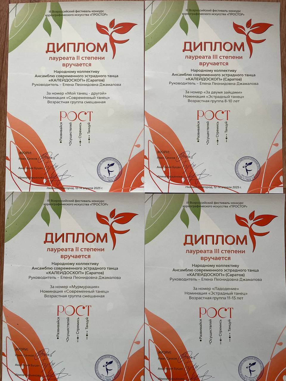 Саратов достойно представил «Народный коллектив» ансамбль современного эстрадного танца «Калейдоскоп» под руководством Елены Леонидовны Джамаловой. Артисты не только выступили на высшем уровне, но и добились значимых результатов: