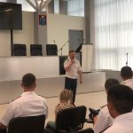 Праздничную атмосферу мероприятия с первых минут задал неофициальный гимн уголовно-исполнительной системы России – песня «Под флагами УИС», написанная сотрудником УИС из города Иркутска Александром Пирчем.