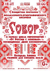 Приглашаем на концертную программу фольклорного-этнографического ансамбля «Собор», посвящённую «Дню косоворотки», которая состоится 12 июля 2025 года в 18:00 ч. на площади Ленина.