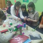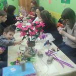 На занятии по декоративно-прикладному искусству ребята из инклюзивной творческой лаборатории «Дорога к счастью» завершили праздничные букеты к 8 Марта! Используя горячий клей, шпажки, синильную проволоку и зелёный фетр, они создавали нежные цветы, вкладывая в них тепло своих сердец.