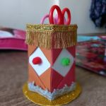 Вчера во Дворце культуры «Россия» состоялся мастер-класс для участников творческого объединения «Дорога к счастью». Ребята учились делать органайзер — оригами для канцелярских принадлежностей. Украшали работу стразами, бусинками и кружевными лентами. В работе были использована цветная бумага и картон.