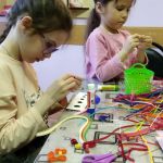 На этой неделе в «Народном коллективе» клубе декоративно-прикладного творчества «Мастерица» состоялся мастер-класс по квиллингу. Дети учились создавать объемные композиции из скрученных в спиральки длинных и узких полосок бумаги. Готовым спиралькам придаётся различная форма и таким образом получаются элементы бумагокручения, называемые также модулями. Уже они и являются «строительным» материалом в создании работ — картин, открыток, альбомов, рамок для фотографий, различных фигурок, часов, бижутерии.