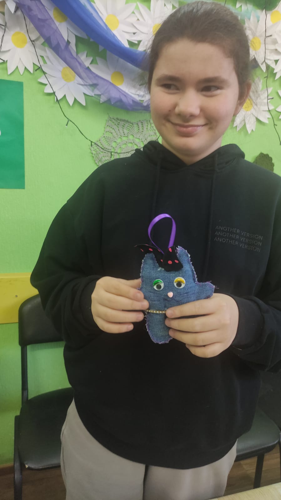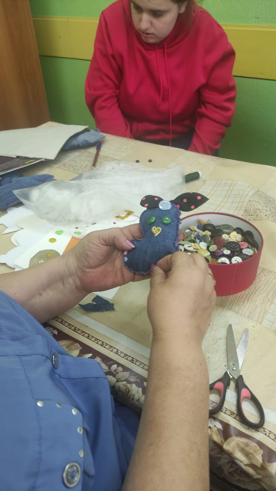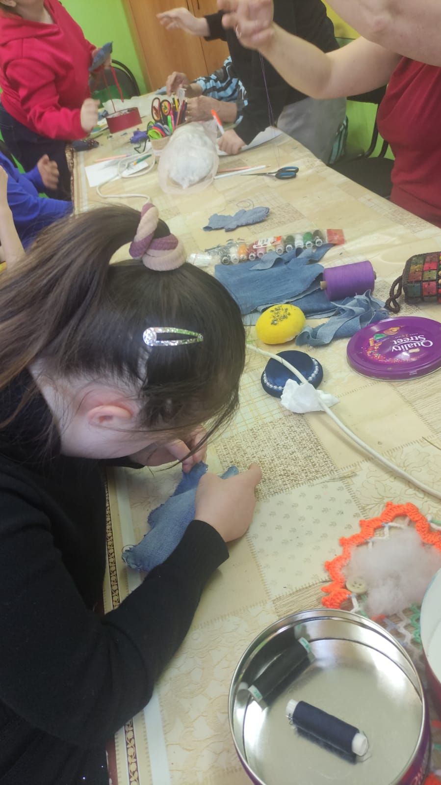 На занятии по ДПИ в инклюзивной творческой лаборатории «Дорога к счастью» ребята создавали милые игрушки из… старых джинсов!