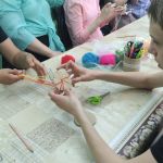 На занятии по ДПИ в инклюзивной творческой лаборатории «Дорога к счастью» ребята осваивали искусство кумихимо — традиционной японской техники плетения шнурков.