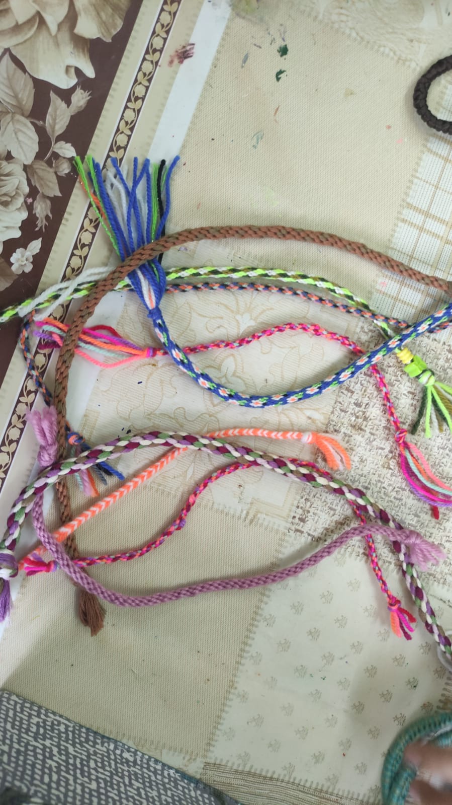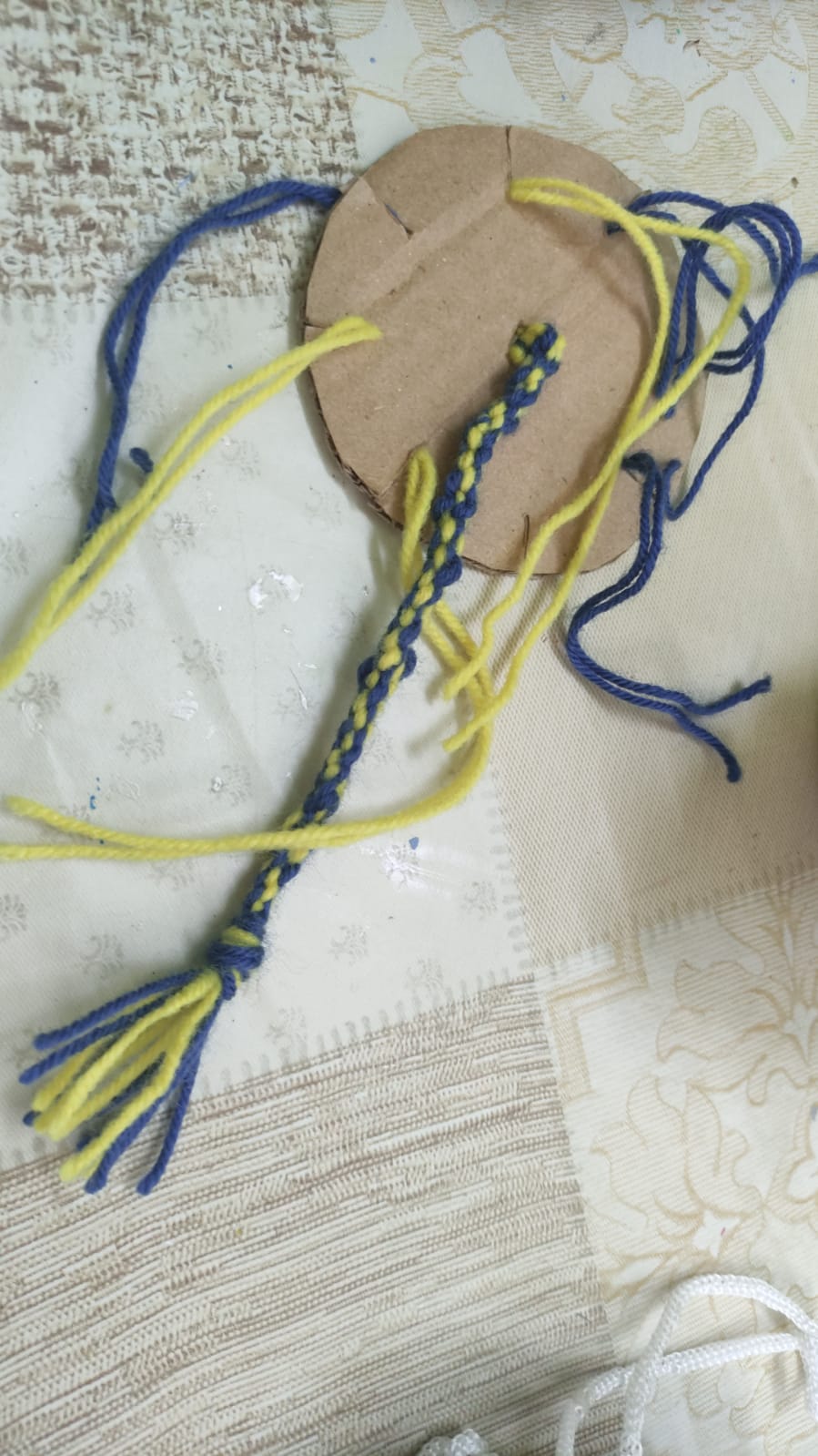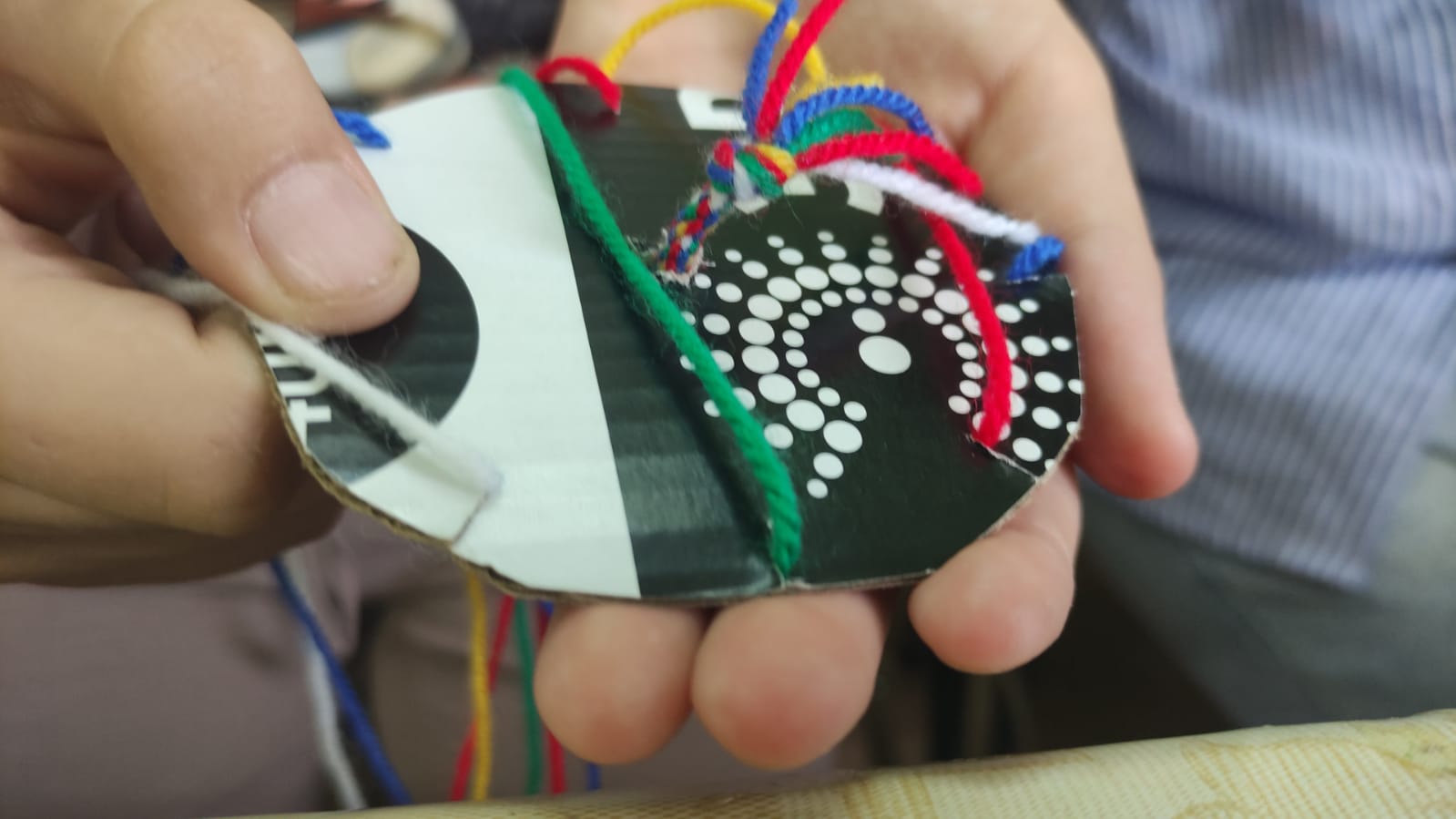 На занятии по ДПИ в инклюзивной творческой лаборатории «Дорога к счастью» ребята осваивали искусство кумихимо — традиционной японской техники плетения шнурков.