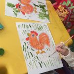 Сегодня во Дворце культуры «Россия» в детской студии «Развиваемся, играя» состоялся мастер-класс «Травка для петушка». Малыши рисовали травку, по которой гуляет петушок.
