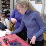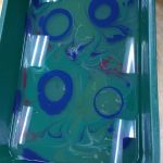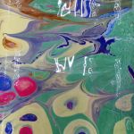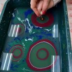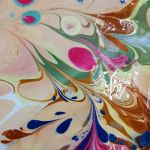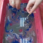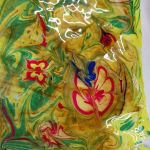 Специальными красками на вязкой воде создают оригинальные удивительные шедевры. Цвета чудесным образом перетекают из одного в другой, образуя узоры необычайно сказочной красоты. При помощи палочки ребенок регулирует движение краски в нужном направлении. Дети учатся создавать уникальные изображения различных 3 форм, воплощая в реальность свой мир фантазии. По окончании рисунок переносится на заранее подготовленное бумажное полотно или тканевую основу.