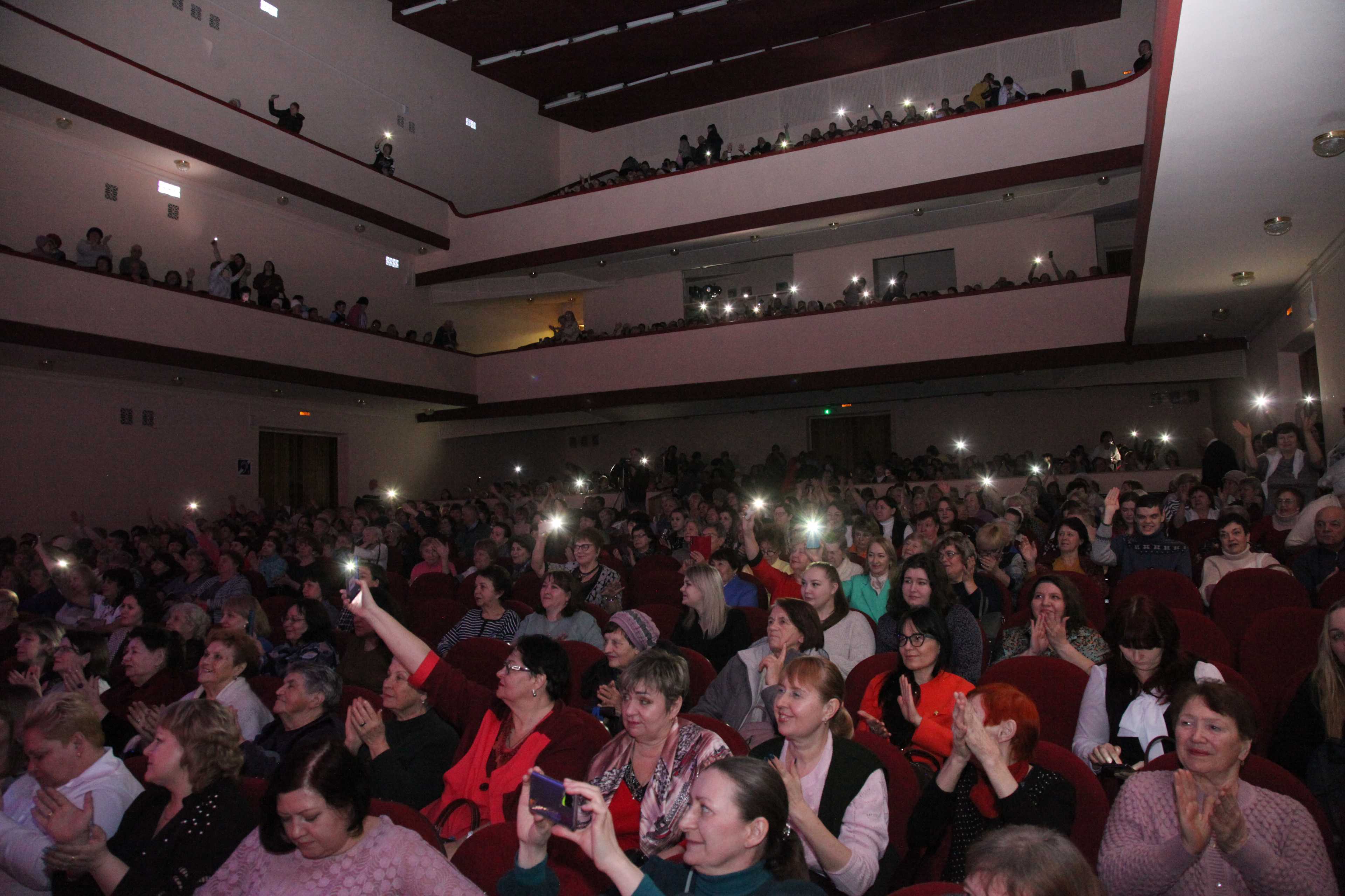 4 марта 2026 года Театральный зал Дворца культуры «Россия» наполнился светом и музыкой задолго до официального начала. В фойе и зале звучала легкая фоновая мелодия, настраивая гостей на лирический лад, а на большом экране мерцала праздничная заставка, предвещая начало торжества.