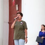 С поздравительными словами выступила Сопредседатель регионального отделения Общероссийской организации Народный фронт «За Россию», заслуженный работник культуры Российской Федерации, директор Дворца культуры «Россия» Ольга Петровна Сынкина: “Сегодня мы отмечаем День России! Когда мы говорим «Россия», мы, россияне, подразумеваем не только нашу необъятную страну, но и всех нас — единый народ. И нам, Дворцу культуры «Россия», вдвойне приятно дарить вам сегодня наше творчество.
