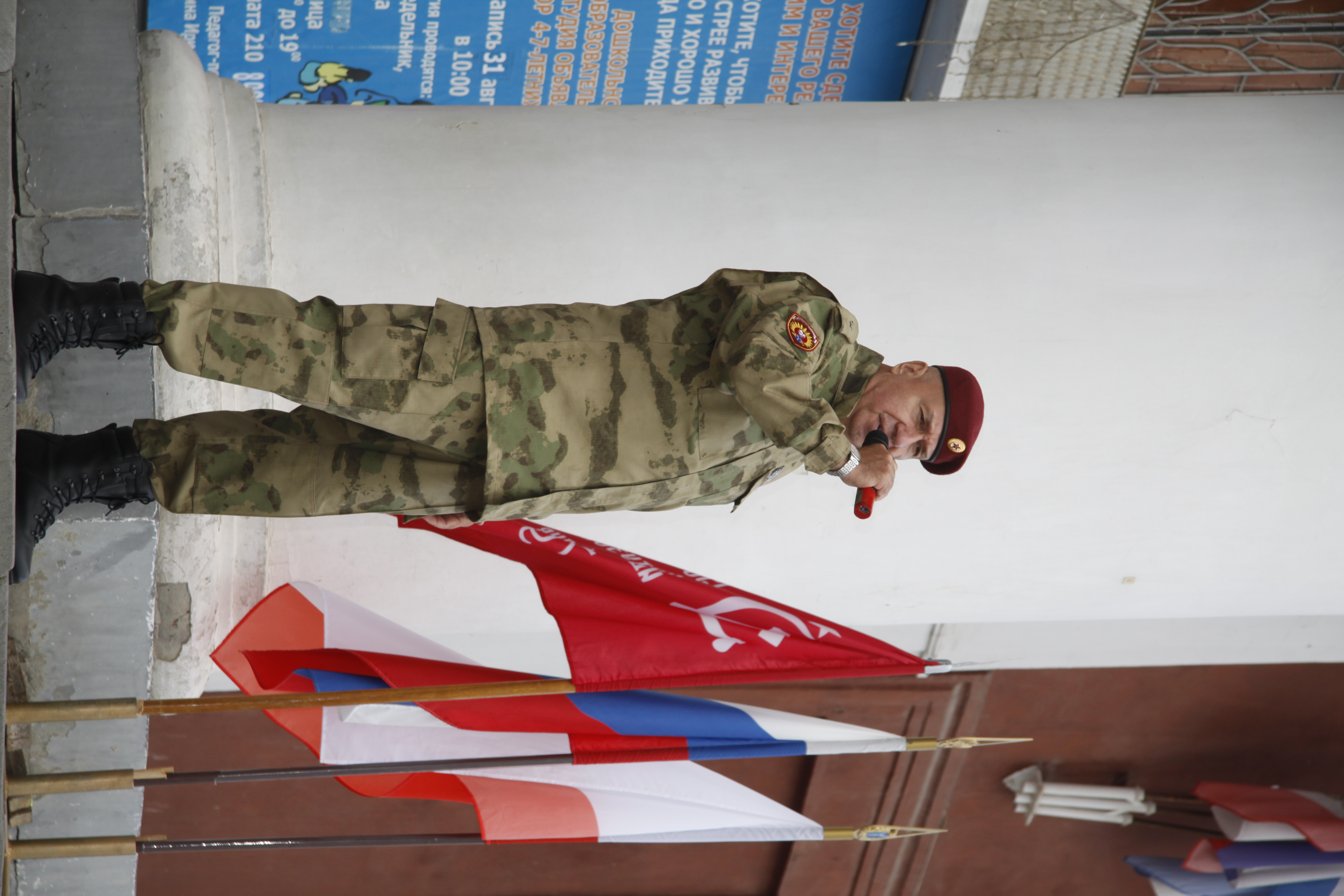 «Уважаемые ветераны, дорогие ребята, преподаватели, почётные гости, участники специальной военной операции, антитеррористической операции, Боевое Братство. Сегодня вся страна объединяется, чтобы сказать «нет» терроризму. Мы помним трагедию Беслана и чтим память погибших. Наши военные делают всё возможное и невозможное, чтобы над нашими головами было мирное небо. Мы знаем, что только объединившись, мы сможем победить любого врага. Будущее страны — за умными и образованными. Учитесь, будьте сильными и всегда будьте на страже нашего государства!»
