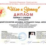 Народный коллектив Ансамбль эстрадного танца «Непоседы», руководитель Ирина Примачук, стал обладателем Гран-При всероссийского конкурса! Эстрадные танцы «Минни Маус» и «Танец дождя» — лауреатом I степени! Мы гордимся вами!