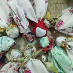 - В большой квадрат, на середину кладём любую ветошь, можно кусочек ваты, небольшой шарик, формируем головку, туго перетягивая нитками, расправляем ткань.