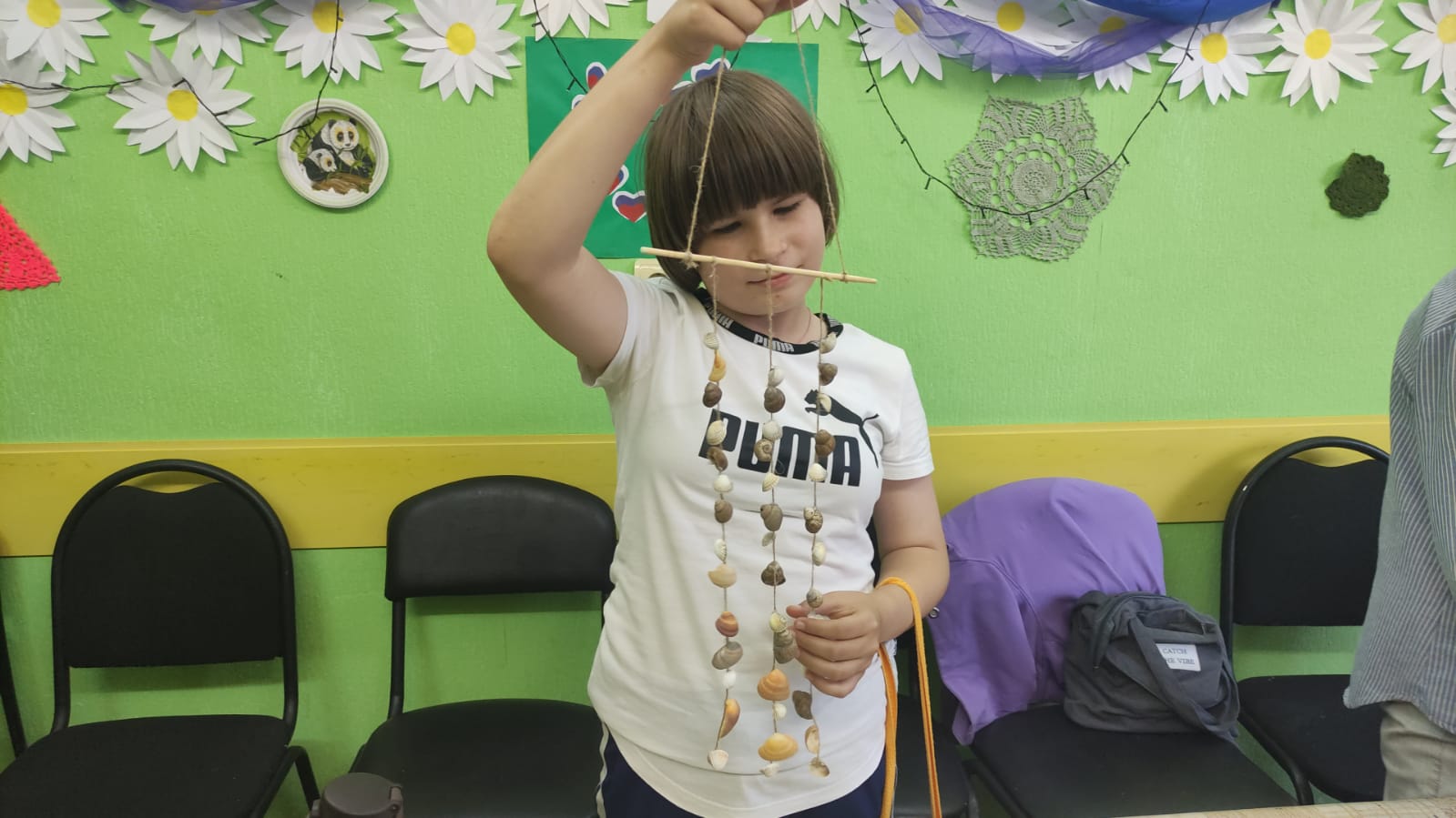 Палочки для роллов, словно легкие балки будущего мобиля, ракушки, хранящие шум далёкого моря, гладкие деревянные бусины и прочные нитки — вот и всё, что нужно для чуда. Но главный ингредиент — это, конечно, безграничная детская фантазия.