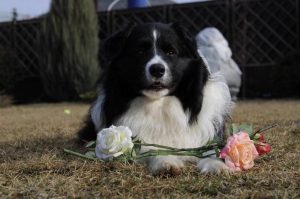 Онлайн — выставка фотографий «Наши верные друзья». «Дарю Вам цветочек», Лорд, бордер колли. Домашний любимец ученицы 10а класса МОУ СОШ 33 г. Энгельса Тюхтиной Ангелины.