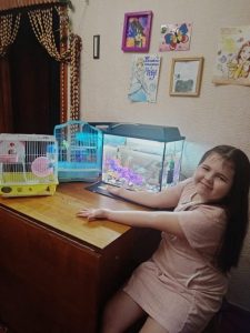 Онлайн — выставка фотографий «Наши верные друзья». Попугай Тини, Хомячок Хома и аквариумные рыбки, Сенновская Виталина, 10 лет, МОУ СОШ 1 имени Т.Г. Мазура, г. Пугачев Саратовской области.