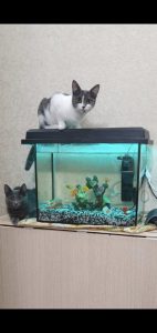 Онлайн — выставка фотографий «Наши верные друзья». 1,2 Сердечко из котиков. На фото две сестры Шеба и Мисти подобраннве летом в деревне. 3- на рыбалке. На фото кошечки Шеба и Мисти и 5 рыбок тернеций и 1 сомик.
