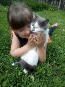 Онлайн — выставка фотографий «Наши верные друзья». Рассказ от участника: «Меня зовут Саша Вилкова. Я живу в Саратовской обл. Ивантеевском р-н., с. Клевенка. У каждого человека есть свое любимое животное. У меня это кошка. Иметь дома забавного пушистого питомца я мечтала всегда. В один чудесный день у меня появился долгожданный питомец. Я не очень долго думала над тем, как его назвать. Когда мама принесла кошечку к нам домой, она забралась ко мне на колени и начала тихонько мурлыкать, она была маленькая, как пуговка. И поэтому я назвала её Пуговкой. Моя кошка – настоящая красавица и я её очень люблю».