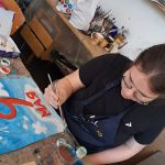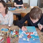На занятиях ИЗО участники инклюзивной творческой лаборатории «Дорога к счастью» рисовали открытки ко Дню Победы — 9 Мая.