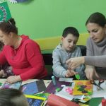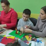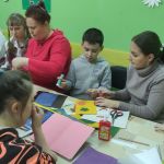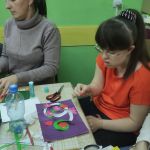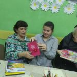 На занятии по декоративно-прикладному творчеству в инклюзивной творческой лаборатории «Дорога к счастью» ребята создавали объёмные открытки ко Дню матери.