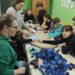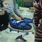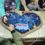 На занятии по декоративно-прикладному искусству под руководством Булатовой Светланы Александровны ребята из инклюзивной творческой лаборатории «Дорога к счастью» продолжили подготовку к конкурсу «Культура без границ». Они создали коллективное панно в форме сердца из шишек, с увлечением добавляя элементы и детали.