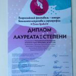 Поздравляем «Народный коллектив» ансамбль эстрадного танца «Непоседы» под руководством Примачук Ирины Владимировны с победой во всероссийском фестивале-конкурсе вокального искусства и хореографии «Всем браво!». Коллектив стал лауреатом 1 степени с композицией «Хлопайте в ладоши» возрастная категория 6-9 лет и лауреатом 1 степени с композицией «Мечты в кармашке» возрастная категория 10-12 лет.