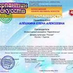 Фольклорный ансамбль “Перепелочка” под руководством Алешкиной Елены Алексеевны принял участие во Всероссийском конкурсе-фестивале искусств “Серпантин искусств” и стал Лауреатом I степени в номинации “Вокальное искусство. Народный вокал. 9-12 лет”. Жюри по достоинству оценило уровень мастерства, выразительность, качество, культуру и технику исполнения, чистоту интонации и качество звучания. Для молодого коллектива — это значимое событие!