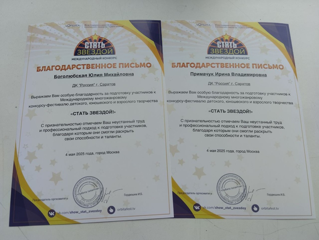 4 мая 2025 года «Народный коллектив» ансамбль эстрадного танца «Непоседы» (руководитель — Ирина Владимировна Примачук, педагог — Юлия Михайловна Боголюбская) достойно представил Саратов на Международном конкурсе «Стань звездой», который прошёл в Москве.