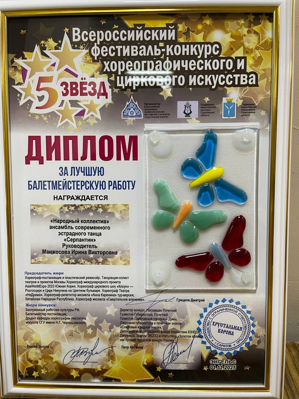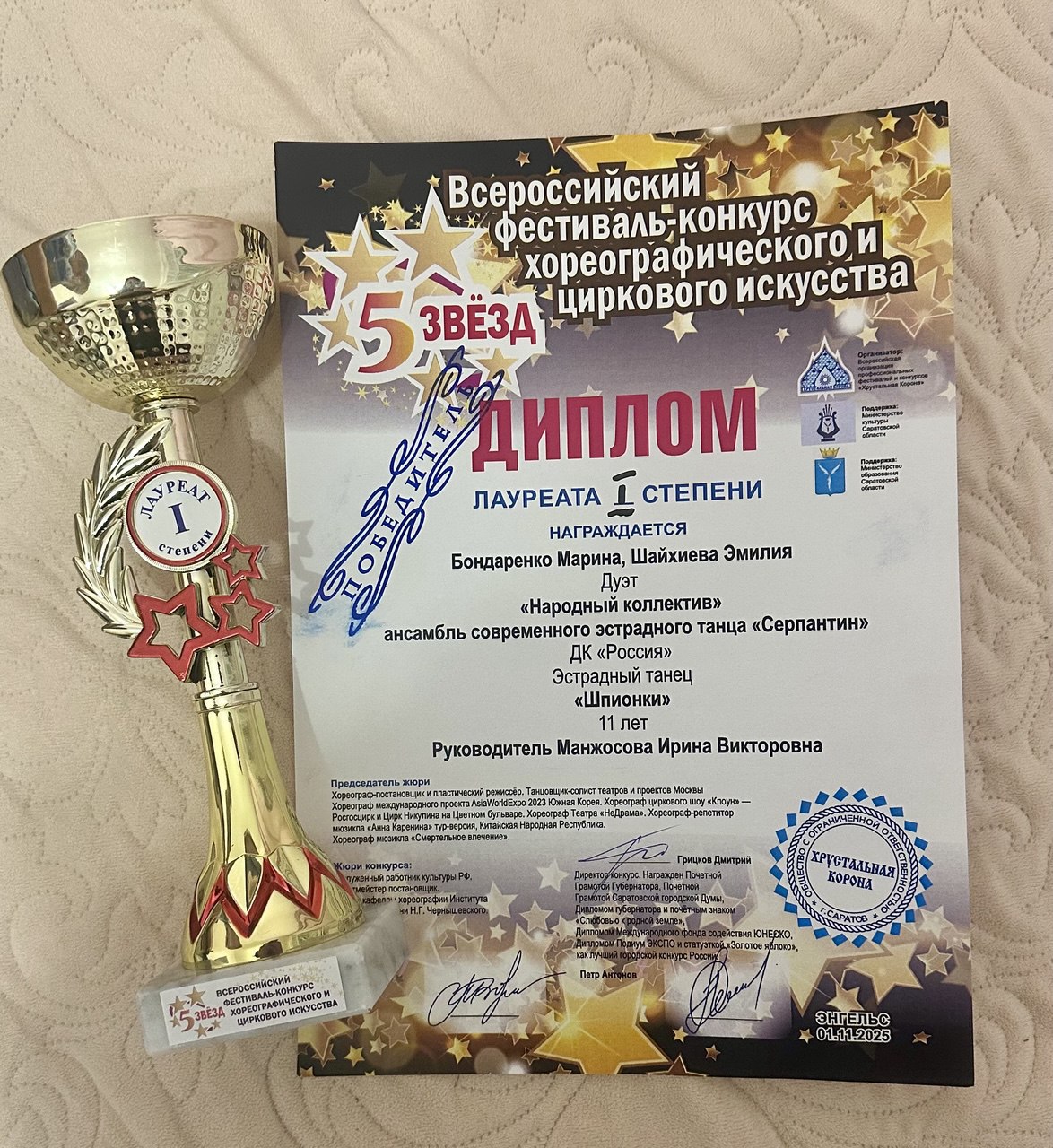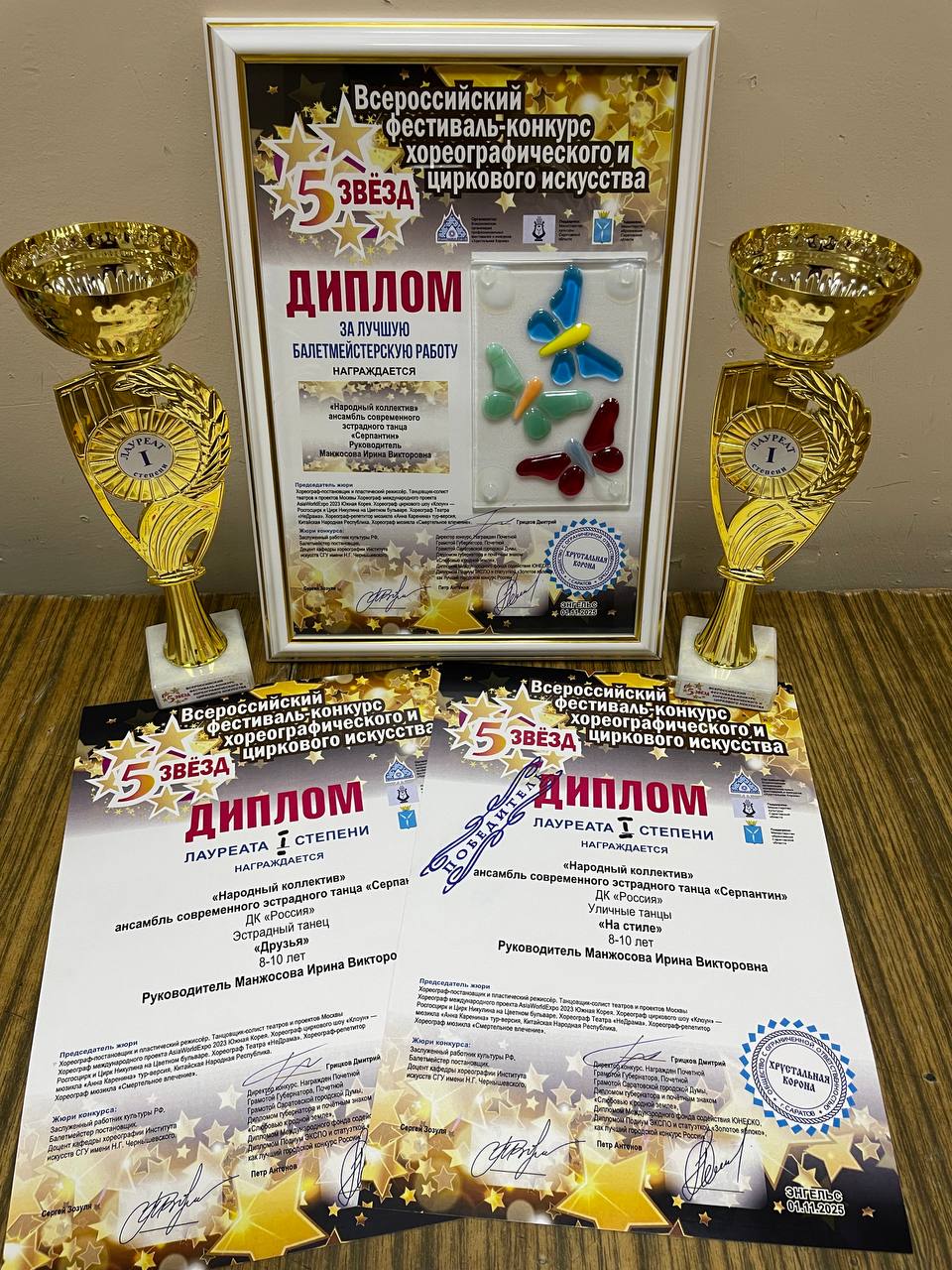 Осенний день, 1 ноября, стал по-настоящему звёздным для «Народного коллектива» ансамбля современного эстрадного танца «Серпантин» Дворца культуры «Россия», который блестяще выступил на Всероссийском фестивале-конкурсе хореографического и циркового искусства «5 Звезд»!