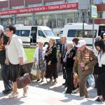 Перед входом в «Словакию» ветеранов встретили под звуки песен военных лет в исполнении народного коллектива эстрадной группы «Астория» и танцы в исполнении танцевальных коллективов «Радуга» и «Школа движений» ГАУК СО ДК «Россия».