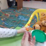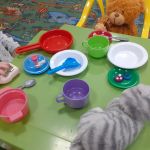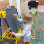 Сегодня в детской студии «Развиваемся, играя» под руководством Сияновой Елены Александровны малыши строили кошечке домик, а затем познакомили её с мишкой. Устроили для них обед — налепили грибочков, салат и печенье. Вместе рисовали и слушали музыку. А в заключении сделали открытку «Малинка для медвежонка».