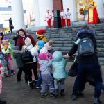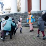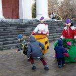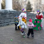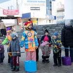 Наши ведущие — Зима, Весна, Забава, Масленица и Скоморохи — приготовили множество увлекательных игр и развлечений для всех присутствующих! Сегодня играли в снежный бой, «пекли блины», устраивали эстафету с мячом и перетягивали канат.