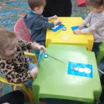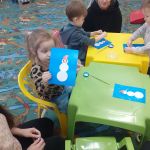Сегодня в детской студии «Развиваемся, играя» малыши узнали, как собирать снеговика. Вместе вспомнили, что такое зима и выучили зарядку, чтобы согреться на морозе. Нарисовали дорожки для снеговиков и раскрасили их. Поиграли в мячики, почитали книжки и построили большие дома из кубиков. В конце занятия сделали аппликацию «Снеговик».