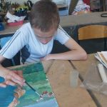 На очередном занятии по изо дети из инклюзивной творческой лаборатории «Дорога к счастью» завершили работу над волжским пейзажем, выбрав в качестве сюжета живописное село Золотое.