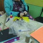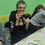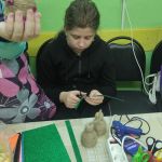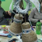На занятии по декоративно-прикладному искусству участники инклюзивной творческой лаборатории «Дорога к счастью» создают новогоднее настроение. Темой стали елочные игрушки — колокольчики. Используя самые простые материалы — пластиковые бутылки, клей и джутовую нить — ребята творили с энтузиазмом и фантазией.